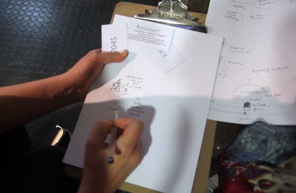 Participants picked an object from the Museum of Climate Futures archives and then picked three cards; date, place and driver (technology, culture, politics, religion, economy etc) In pairs they developed speculative scenarios that narrated the providence of each object.
